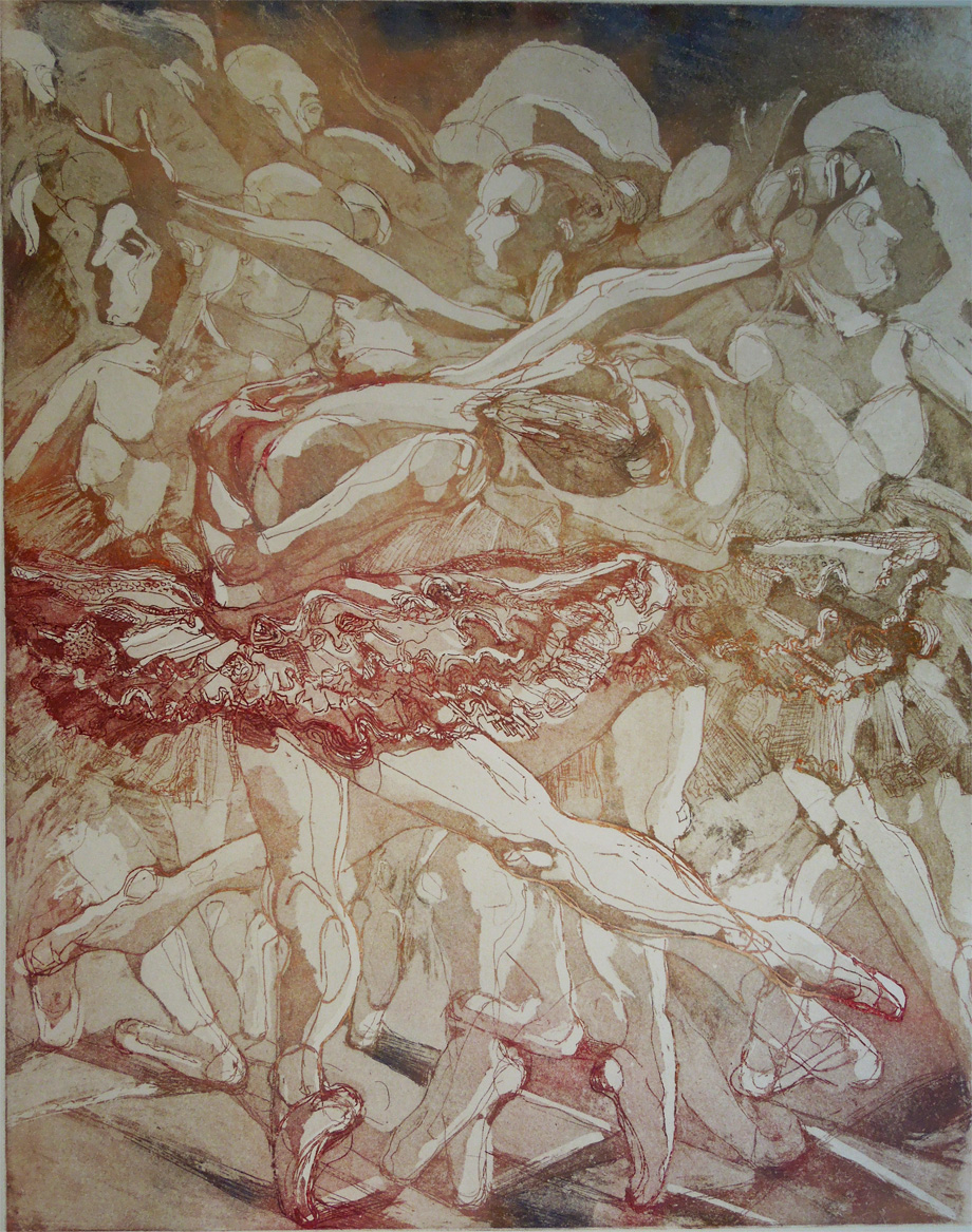 Ballerina 4 (Colour) Posted on March 26, 2014April 7, 2016 by jaynepellington Colour Etching on Fabriano paper. Printed at Hot Bed Press. Image 370mm x 465mm